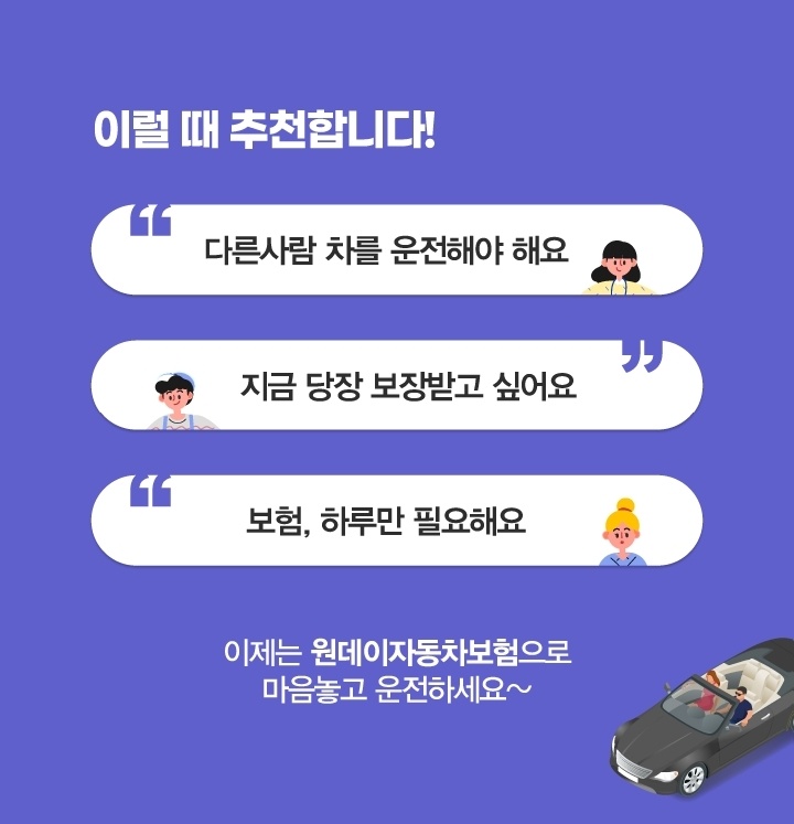 원데이자동차보험 일일보험 하루자동차보험 1인 가입