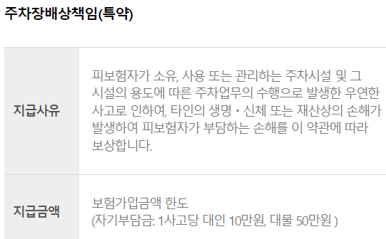 대인 보상은 사망 1인당 1억 5천만원 ,부상 1급의 경우 3천만원,후유장애 1급일 경우 1억 5천만원 , 대물보상은 사고당 최대 10억원까지 보장이 가능합니다.