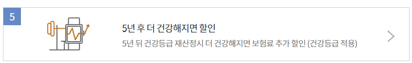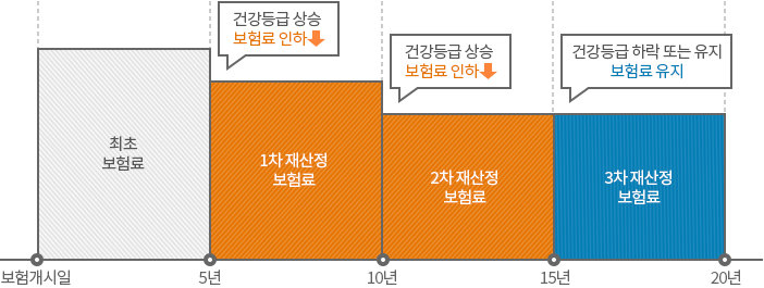 | 5년~10년 | 1차 재산정 보험료 | 건강등급 양호 보험료 인하 |