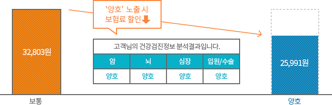 건강등급보험료예시보통 32,803원 '양호'등급 노출 시 보험료 할인 양호 25,991원