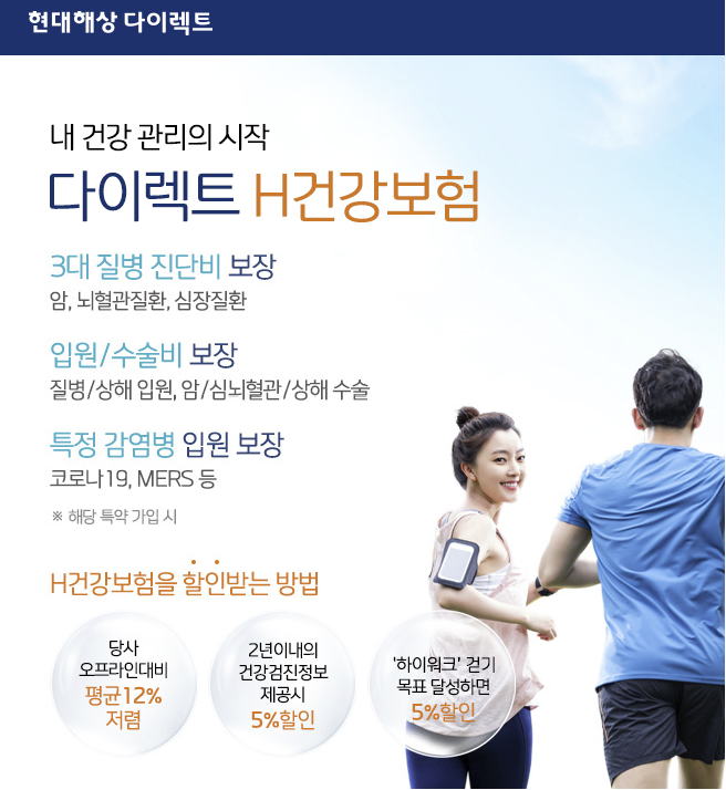 현대해상 다이렉트 H건강보험 보험료 보장내용 할인혜택 알아보기