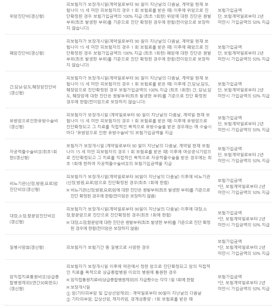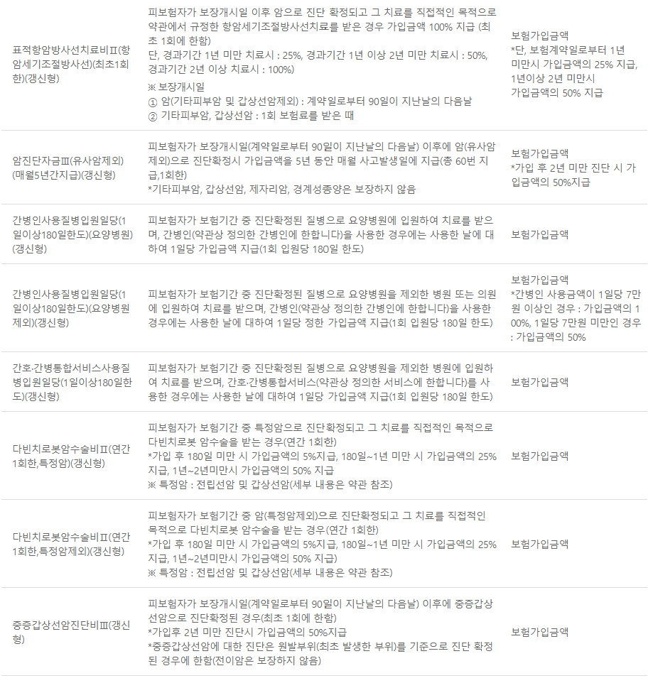 DB손해보험 다이렉트 암보험 보장내용