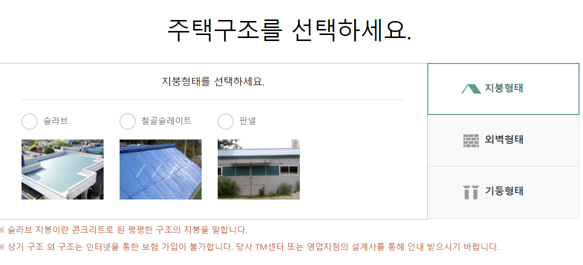 그 다음 주택의 형태, 면적 , 구조 등을 선택합니다.