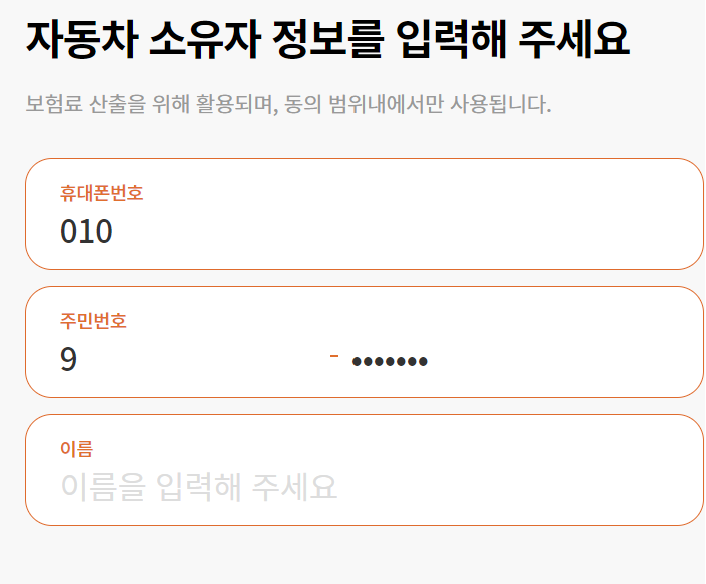 보험료 조회는 간단하게 가능합니다.먼저 휴대폰번호, 주민번호, 이름을 입력하고 보험료 확인하기를 클릭합니다.