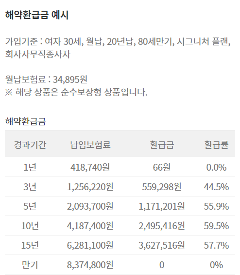 - 계약일로부터 경과기간 1년 미만시 보험가입금액의 50%지급