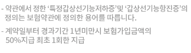 - 계약일부터 경과기간 1년미만시 보험가입금액의 50%지급(해당특약가입시)