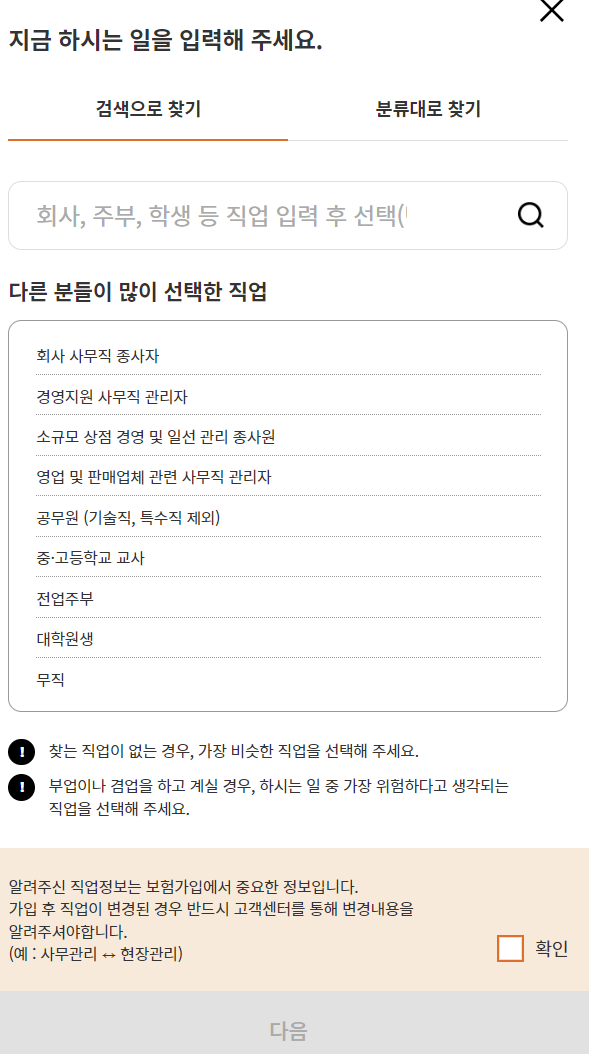 현재 직업 정보를 입력합니다. 그럼 바로 다음과 같이 보험료가 조회됩니다.