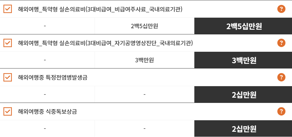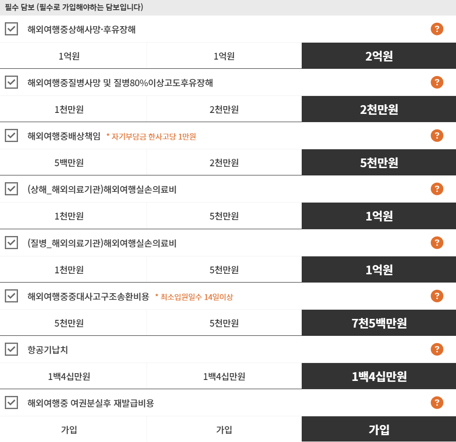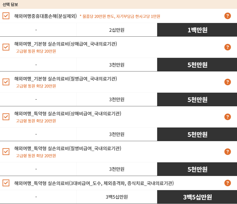 한화손해보험 다이렉트 해외여행보험 보장내용