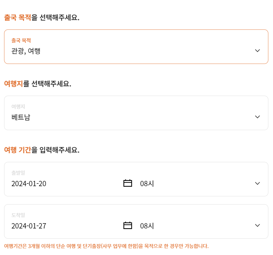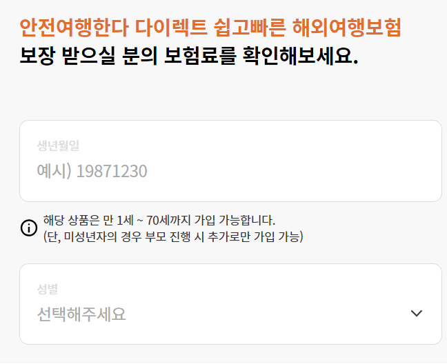 - 3개월 이하의 단순 여행 및 단기출장(사무 업무에 한함)을 목적으로 한 경우만 가입 가능합니다.
