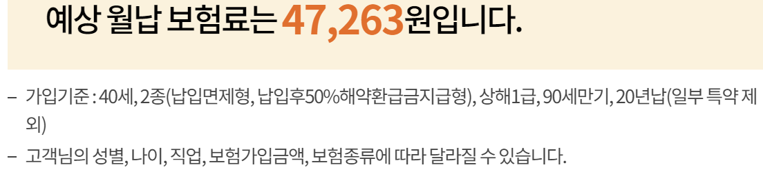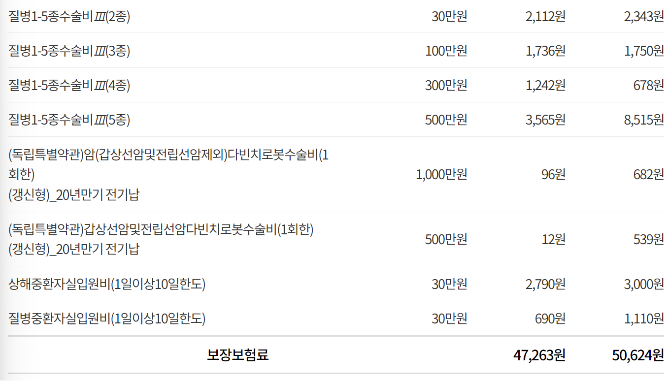 있다 실제로 보험료를 조회해보시면서 보장내용, 보장금액 등을 직접 한번 확인해보시는 것이 가장 좋습니다