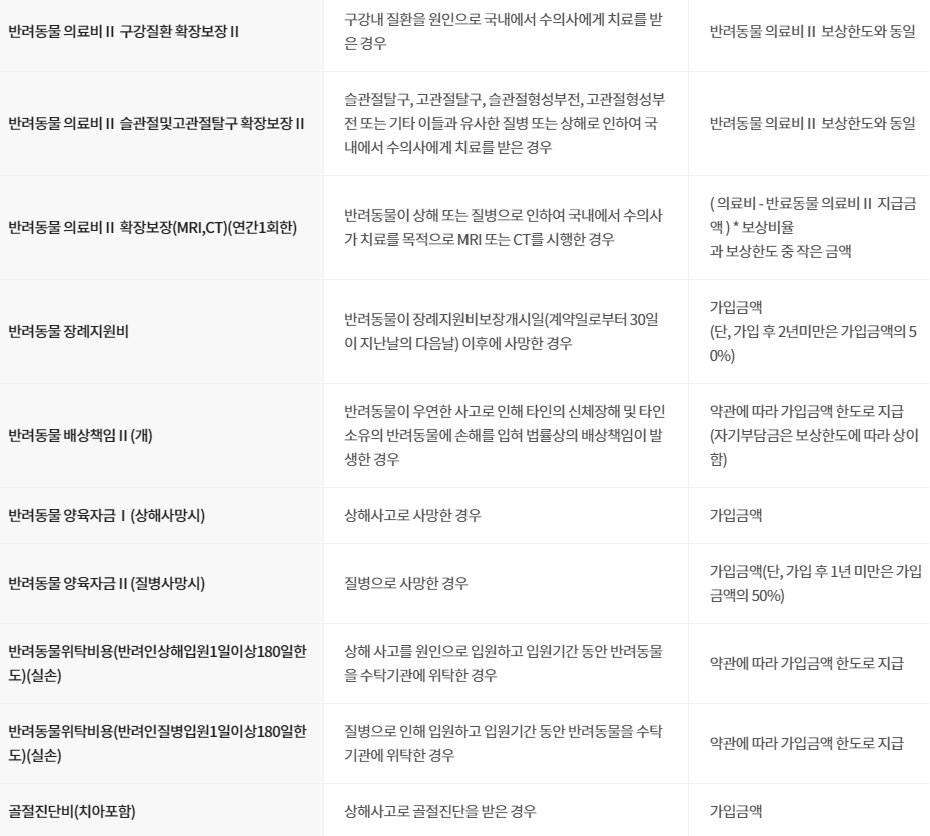 DB손해보험 강아지보험 보장내용