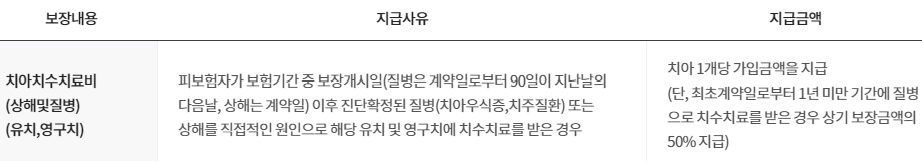 DB손해보험 참좋은 치아사랑보험 보장내용