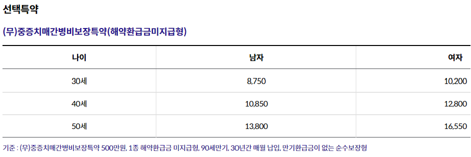 (무)THE든든한간병비치매보험(해약환급금미지급형) 가입금액 500만원, (무)중증치매간병비보장특약(해약환급금미지급형) 500만원 가입 기준