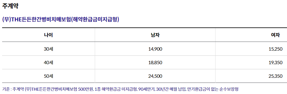 (무)THE든든한간병비치매보험(해약환급금미지급형) 가입금액 500만원, (무)중증치매보장특약(해약환급금미지급형) 1,500만원 가입 기준