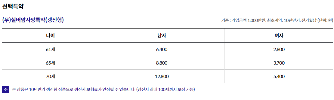 - 6. 갱신계약의 경우 지급사유 발생시 감액없이 보험금을 지급합니다.