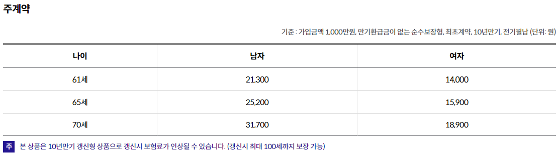 3. 갱신계약의 경우 지급사유 발생시 보험금의 100%를 지급합니다.