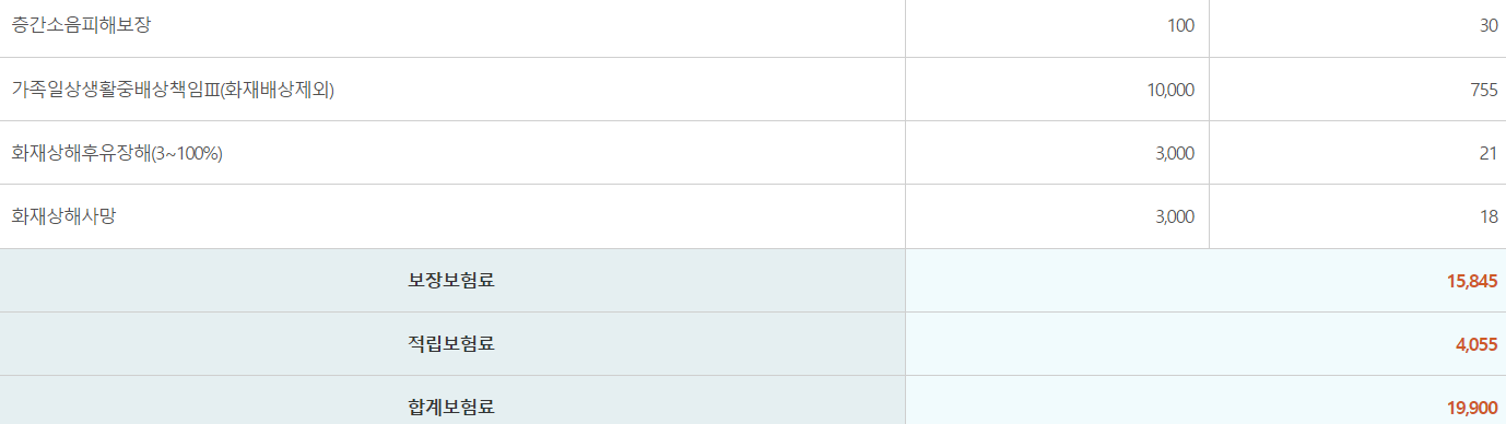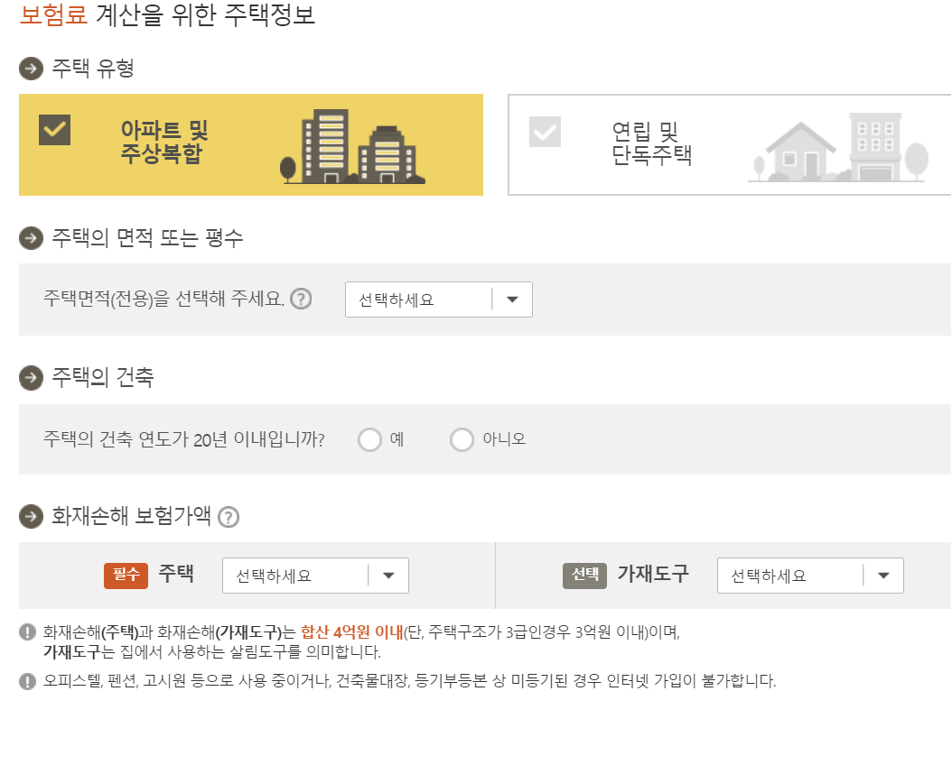 위 보험료는 가입예시 기준으로 산출된 보험료로서 가입자의 성별 및 연령 구분없이 보험료는 동일하며 주택유형, 건축연도, 납기/만기 등에 따라 달라질 수 있음을 알려드립니다.