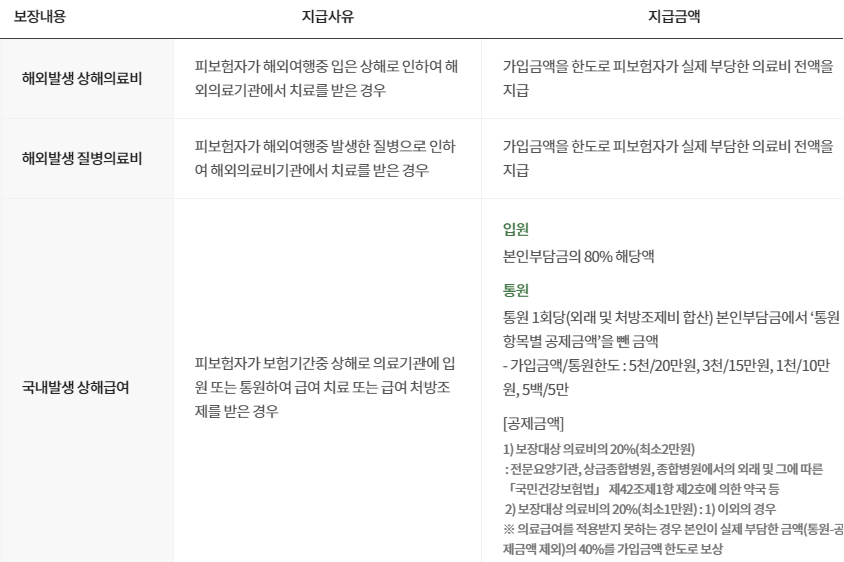 DB손해보험 해외여행자보험 보장내용