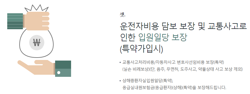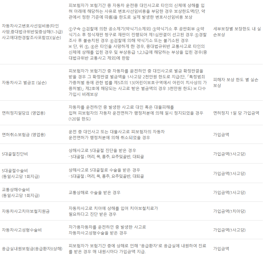 2. 운전자보험은 음주운전, 무면허운전, 뺑소니 등으로 인한 사고는 보상하지 않습니다.