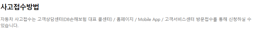 DB손해보험 자동차보험 사고접수 방법