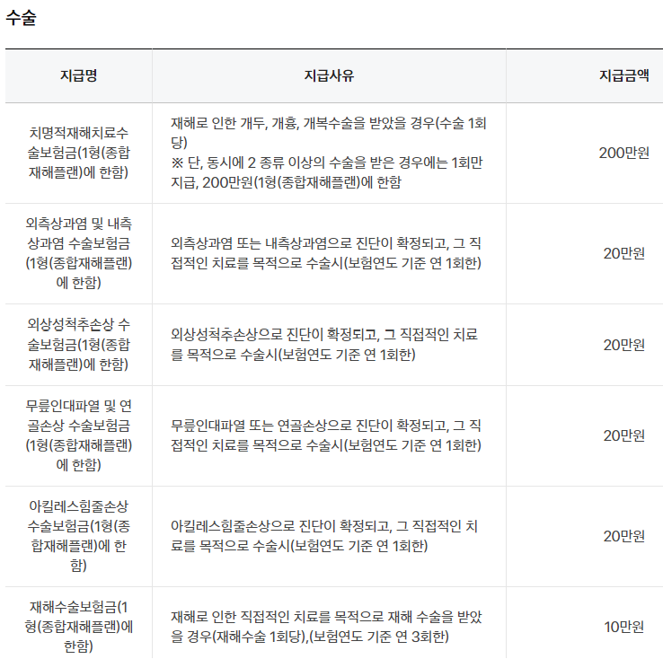 삼성생명 종합재해보장보험 보장내용