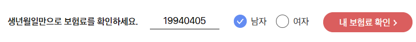 생년월일 , 성별 입력 후 내 보험료 확인을 클릭합니다. 클릭하면 아래와 같이 보험료가 조회됩니다.