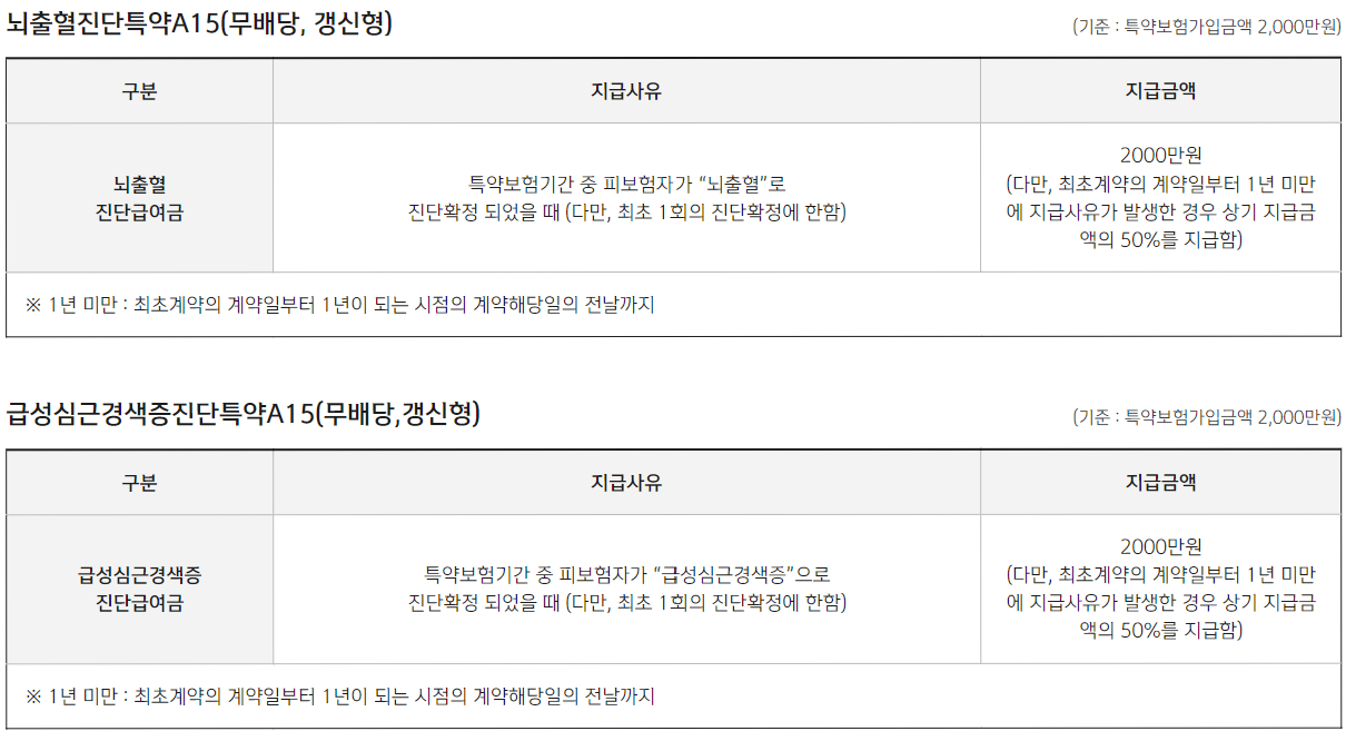 - 매년 보장금액 새롭게 충전: 보험금을 지급받은 후에도 매년 계약일 기준으로 보장금액이 새롭게 충전되어 만기까지 동일하게 보장받을 수 있습니다.