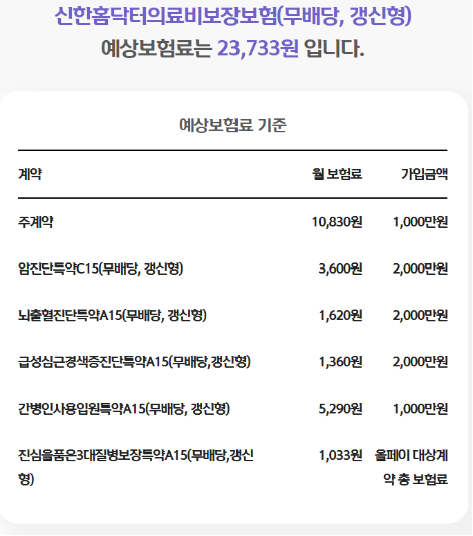 신한라이프 신한홈닥터 의료비보장보험 보장내용 혜택 보험료 조회방법 알아보기
