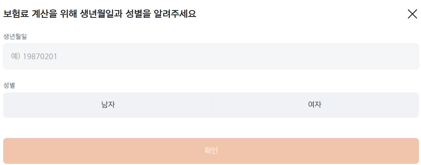 생년월일, 성별을 입력 후 확인을 클릭합니다.