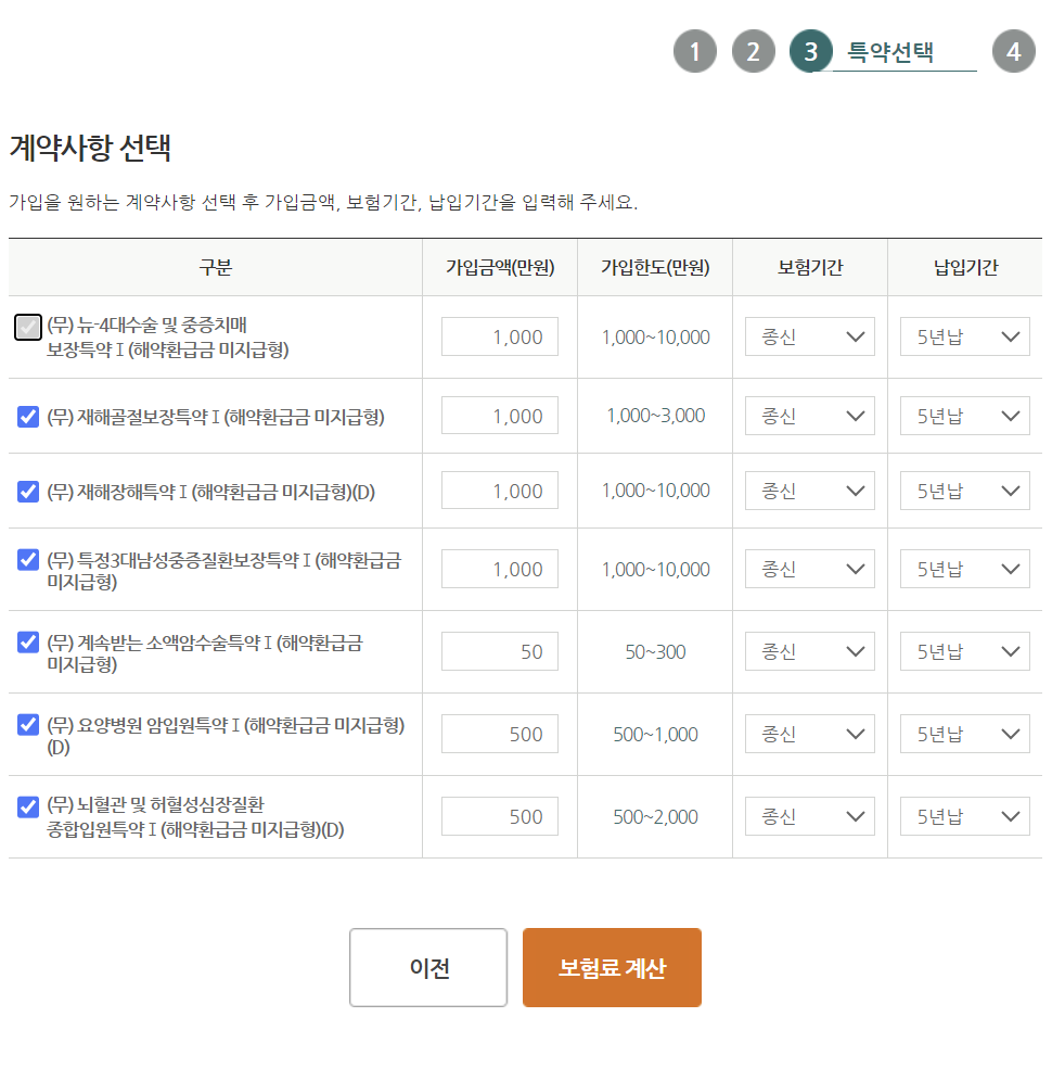 보험료는 원하는 특약 및 생년월일 성별 등 다양한 조건에 따라 달라지므로 직접 조회하면서 설계하는 것이 가장 좋습니다.