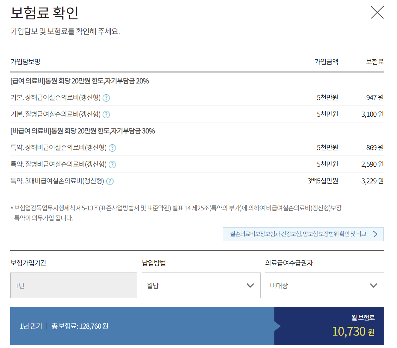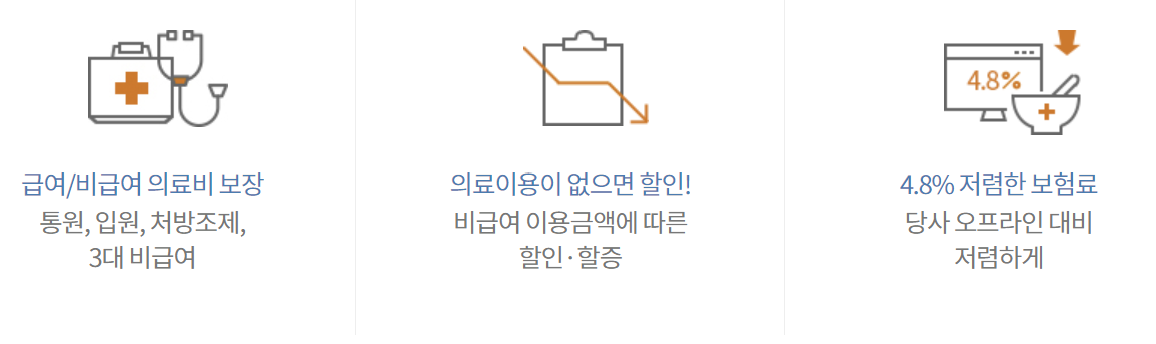다이렉트 전용 단독 실손 보험상품입니다.