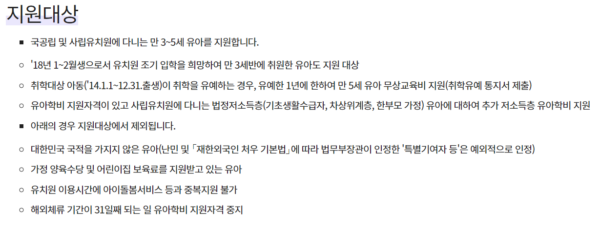 또한 이 제도는 추가지원이 가능한데 저소득층 유아 및 사립유치원에 다니는 법정 저소득층인 기초생활수급자,