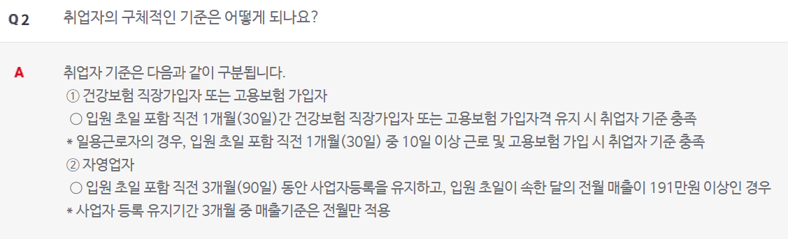 건강보험 직장가입자의 경우 가입기간이 1개월 이상이어야 하며, 고용보험 가입자일 경우 가입기간 1개월 이상,