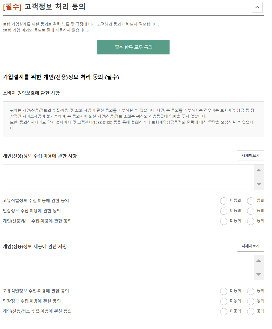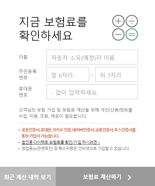 보험료 계산을 위한 필수 정보를 동의합니다. 동의를 해야 보험료를 계산할 수 있습니다.