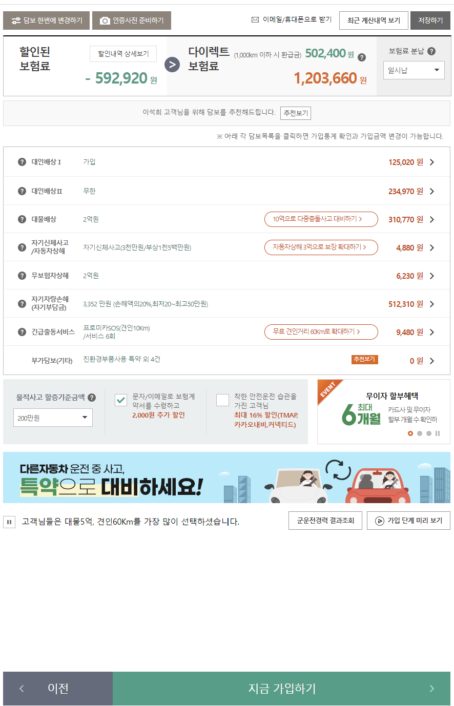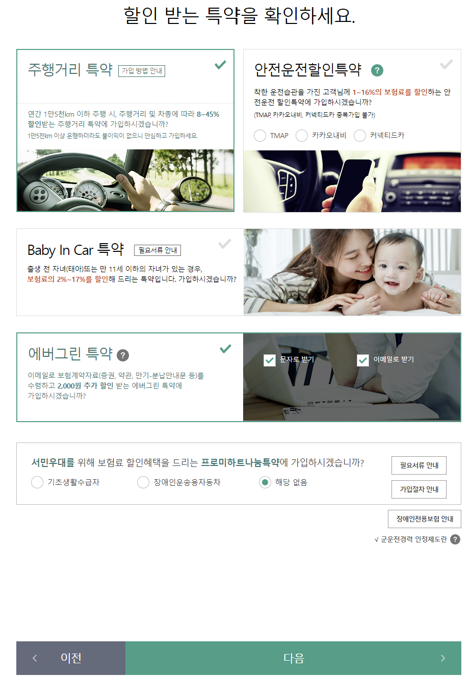 할인 받을 수 있는 특약을 체크합니다.