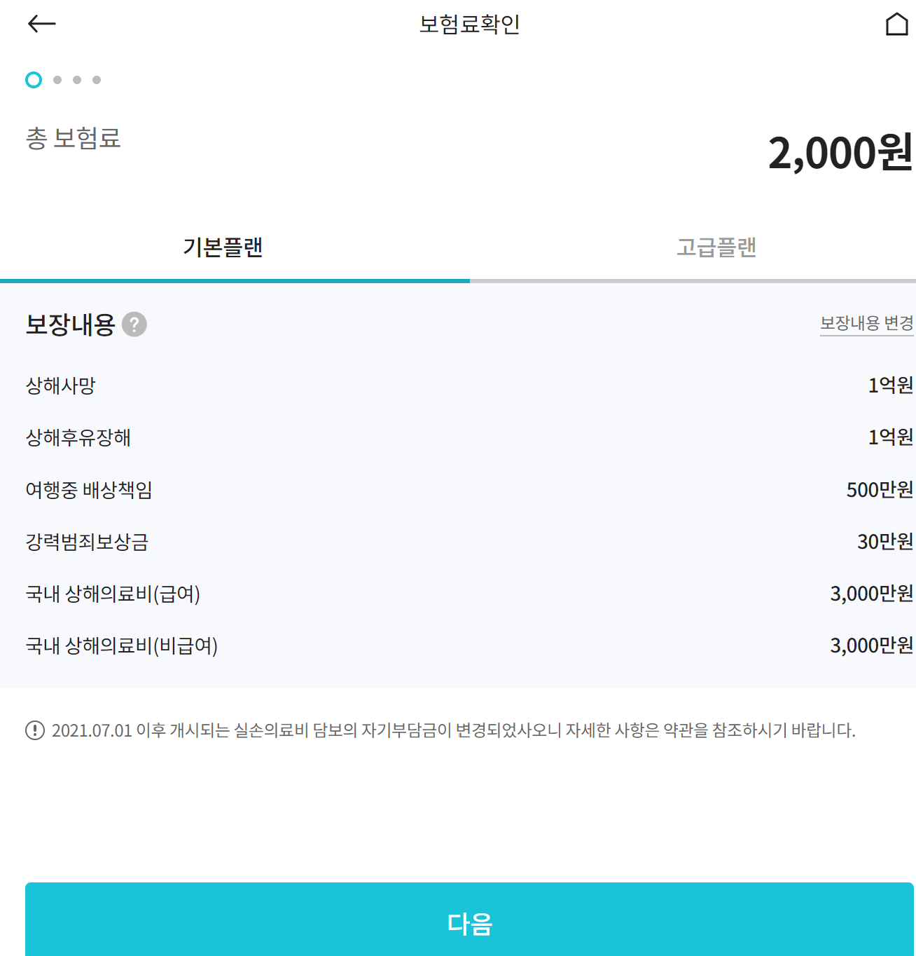 보험료는 사람마다, 여행기간, 플랜마다 다르므로 직접 조회해보시기 바랍니다.