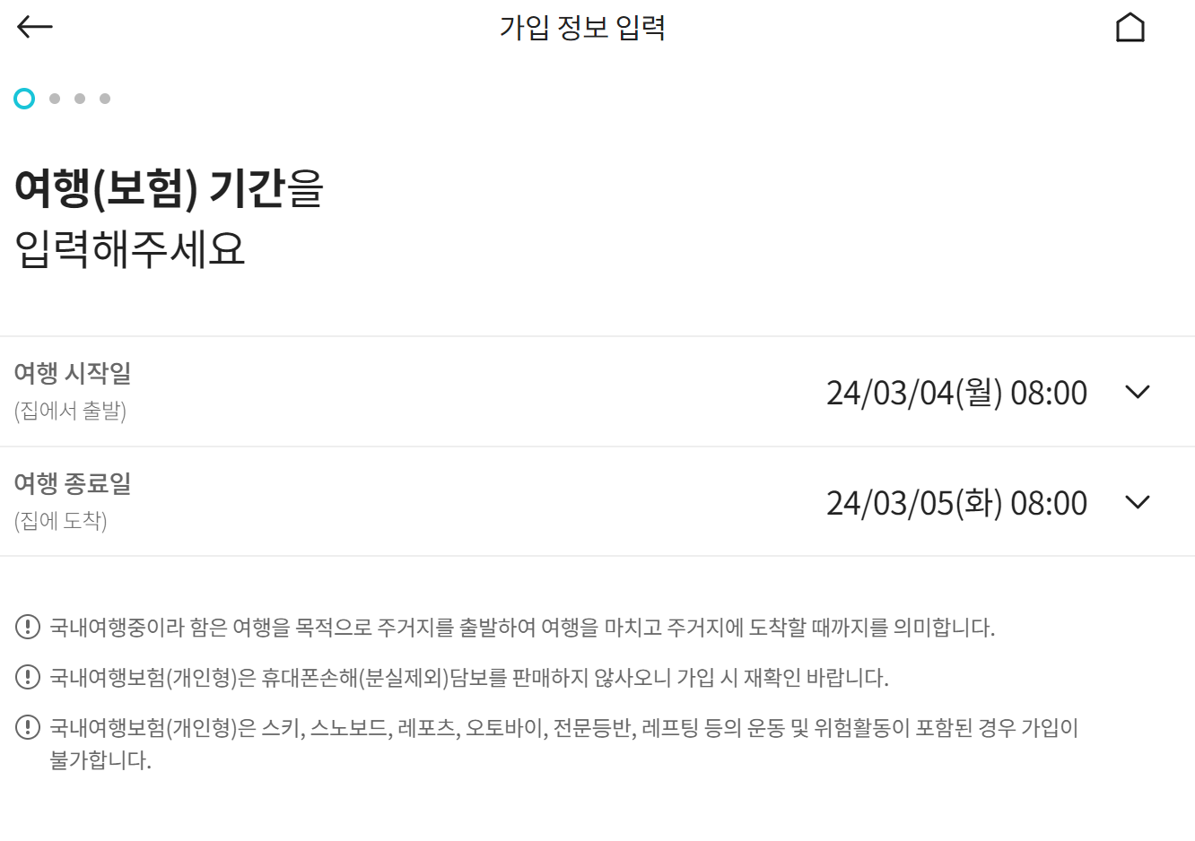 여행기간 입력합니다.