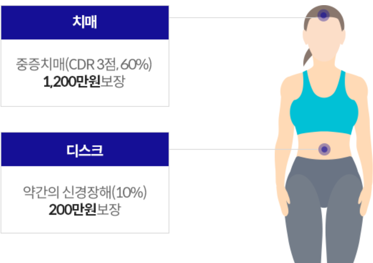 * 주계약 2,000만원, THE간편한질병장해보장특약(갱신형) 2,000만원 가입 기준, 단, 61세~80세의 경우 최대 가입금액 1,000만원