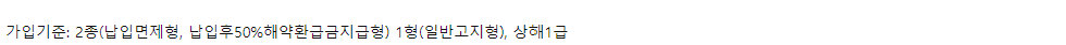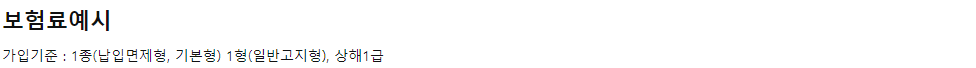 - 예시보험료는 이해를 돕기 위한 것으로 피보험자의 직업, 직무, 나이, 성별, 보험기간 등에 따라 보험료가 달라질 수 있고, 계약인수가 제한적이거나 불가능할 수 있습니다.