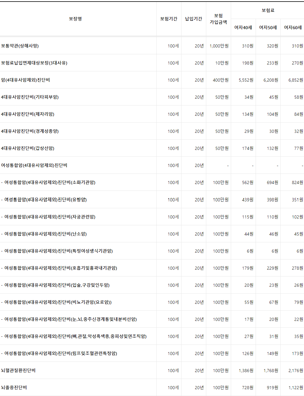 한화손해보험 시그니처여성건강보험 2.0 특징 보장내용 보험료 계산방법