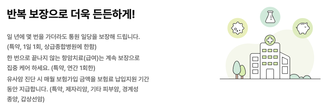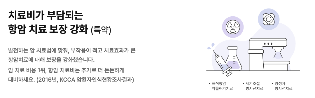 - 암 치료에 집중하고 싶은 분: 암 치료에 집중할 수 있도록 생활비, 간병비 등을 지원하는 특약을 선택할 수 있습니다.