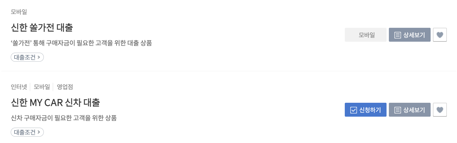 - 신용등급: 신한은행 내부 신용등급 1~7등급 (단, 상품별 상이)