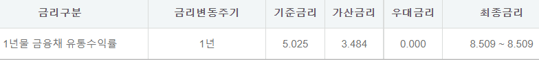 대출금리는 1년 변동금리로 아래와 같습니다.