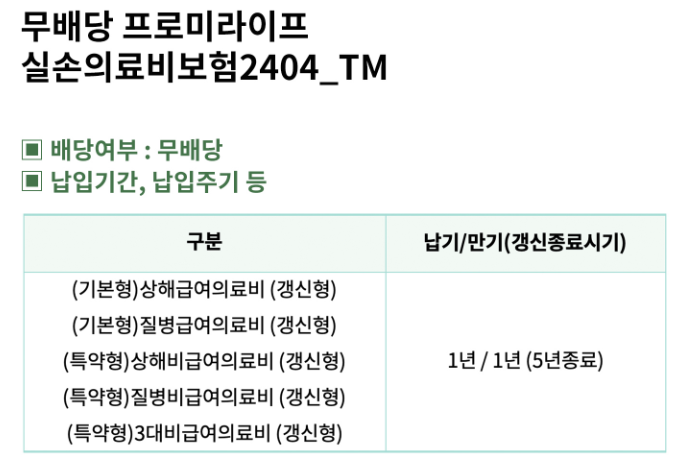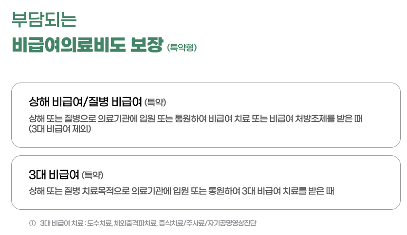 - 비급여 의료비 보장 범위를 3개로 나누어 설계 가능