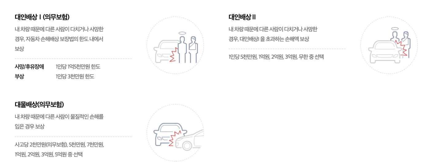 - 대인배상 I·II: 사고로 인한 타인의 인명 피해 보장