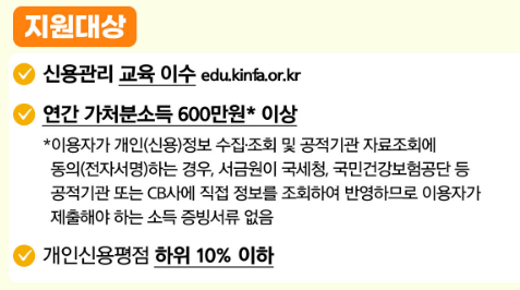 - 신용평점 하위 10% 이하(KCB 또는 NICE 기준) 으로 기준을 적용함