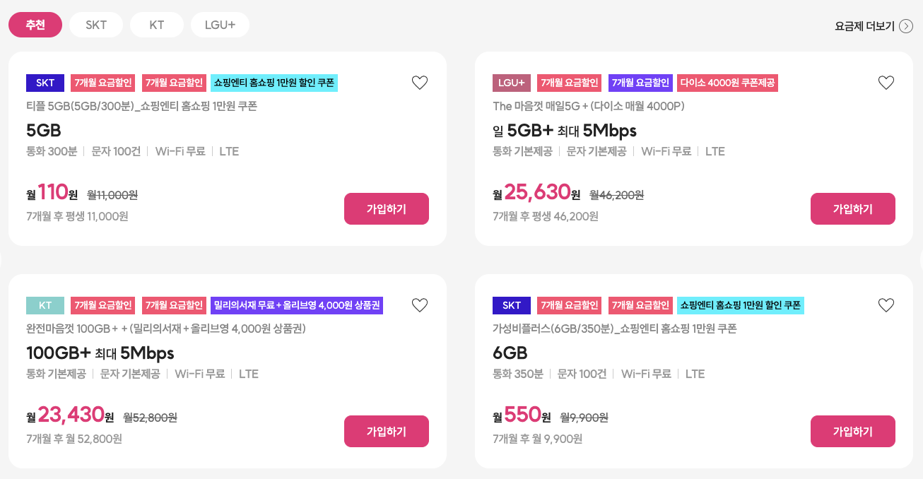 | 티플러스 | SKT, LGU+ | 데이터 중심 요금제에 강점 |