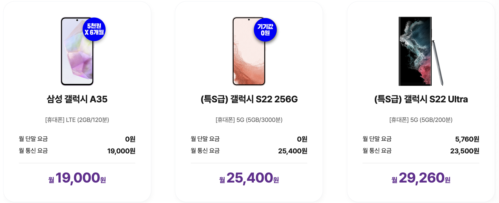 | 통신 품질 | 동일 (SKT, KT, LGU+망 임대 사용) | 동일 |