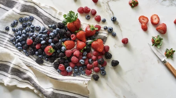 블루베리, 라즈베리, 딸기 등 베리류는 안토시아닌, 폴리페놀 같은 식물 화합물 덩어리입니다. 이는 염증을 유도하는 활성산소를 제거하고 면역세포의 균형을 잡아주는 역할을 합니다.