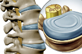 디스크(추간판)가 튀어나와 척추관 안쪽 공간을 침범하면서 신경을 압박해요. 디스크와 협착증이 동시에 있는 경우도 많아요.